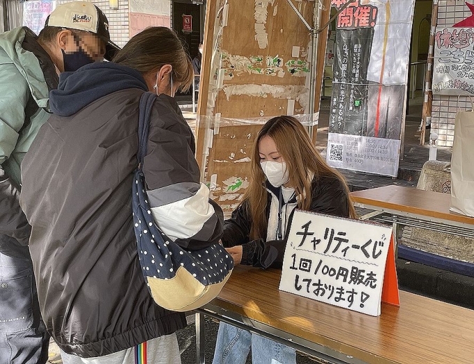 「チャリティーくじ」は1回100円で、くじの結果に応じた商品詰め合わせをお渡しするもので、10時、12時、14時の1日3回実施されました。