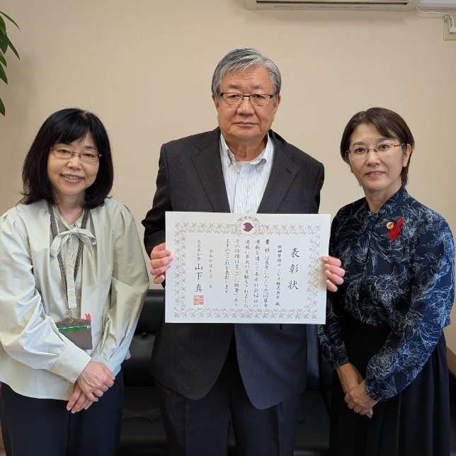 今年度、表彰された団体は、長年にわたり、共同募金にご寄付いただいている阪神管理サービス株式会社様(本社:橿原市八木町1-8-15 代表取締役社長 清水 克益様)です。