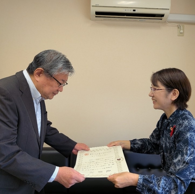 令和7年10月15日(水)、橿原市内の本社を訪問し、表彰状を伝達させていただきました。
