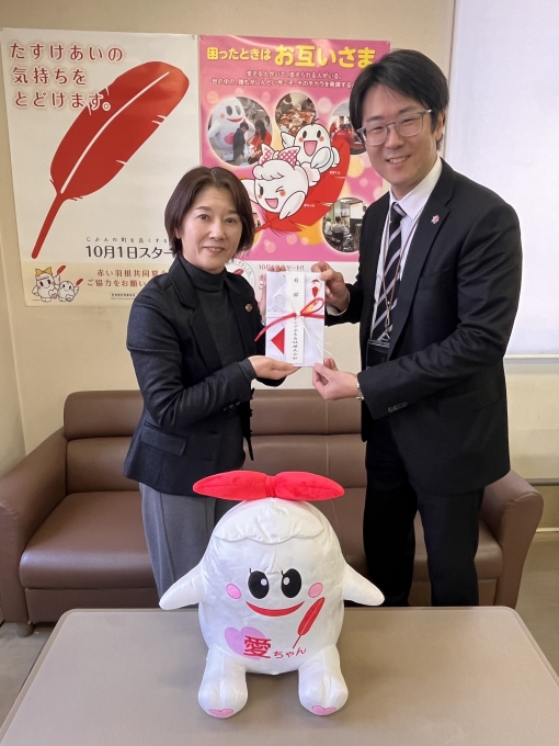 このたび、ホンダ奈良自販株式会社様(磯城郡田原本町保津274-1)の専務取締役 吉川 竜介様が来局され、法人募金として10万円ご寄付いただきました。