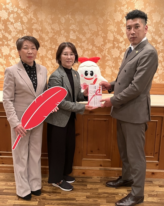 令和8年1月28日(水)、奈良県商工会青年部連合会様及び同女性部連合会様から、歳末たすけあい募金への協力として、24地域の青年部と12地域の女性部を通じて会員の皆さまから集められた寄付金をご寄付いただきました。